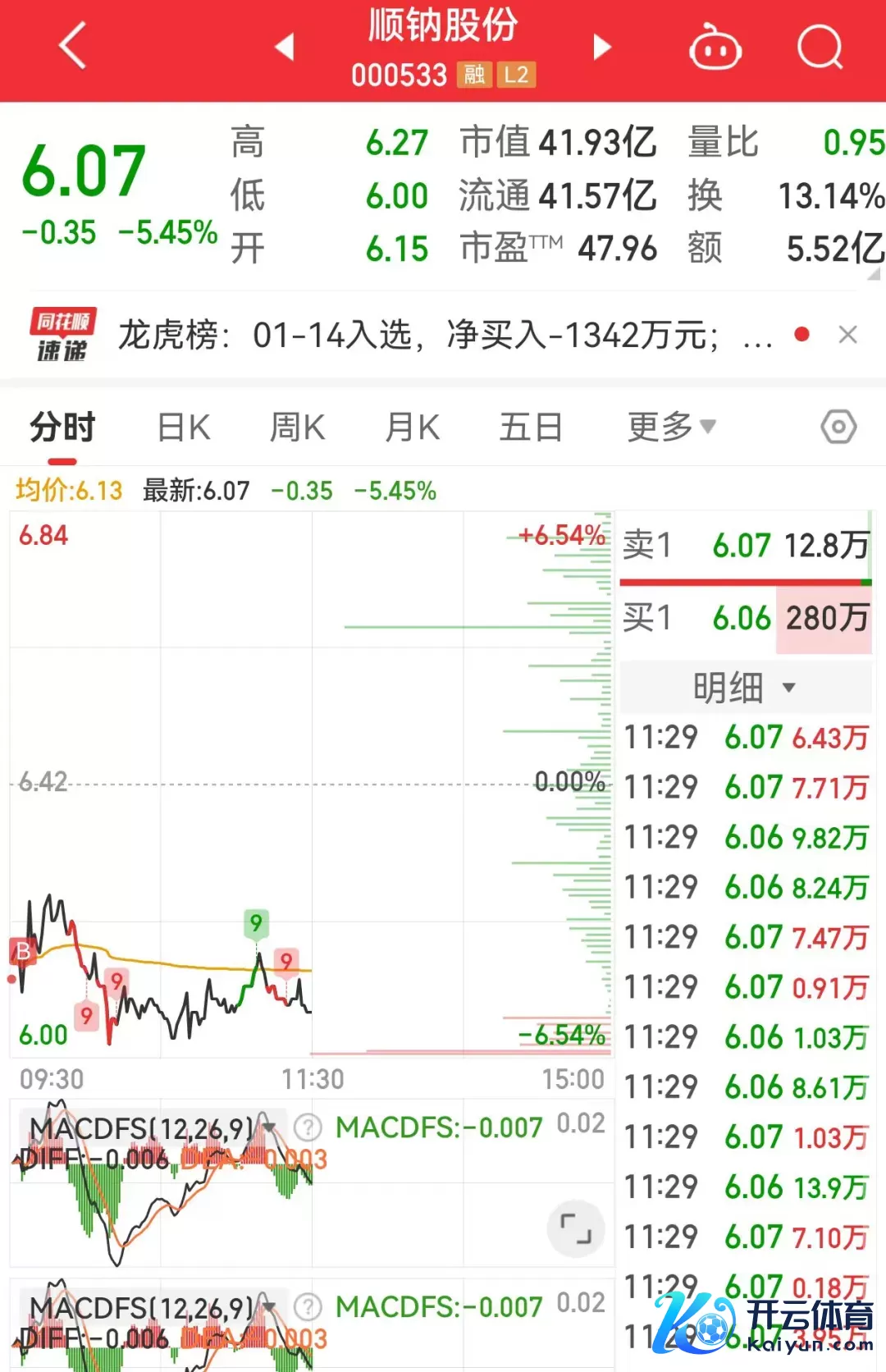 2、顺纳股份,早上6.12吸了一笔,可是今天康盛股份走的相比弱,导致顺纳也没起来,下昼望望有莫得契机回流拉高让我T一下。