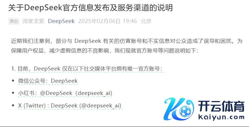 DeepSeek示意,当今,DeepSeek 仅在以下社交媒体平台领有独一官方账号:
